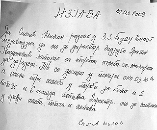 Gvozdenović pokazuje izjavu koju je Milan Simić potpisao u kojoj i sam priznaje šta je uradio. „Na osnovu te izjave direktor je po zakonu dužan da suspenduje radnika i ja sam ga suspendovao, ne isterao sa posla. Poželeo sam da u tom trenutku ne budem tu, ali sam bio. Kao čovek sam se osetio bedno, kao rukovodilac morao sam da reagujem po zakonu. Imao sam ranije dojavu da je policija uhvatila tri moja radnika sa 20 hlebova i ja sam morao da reagujem jer su ljudi koji rade to tražili od mene.“