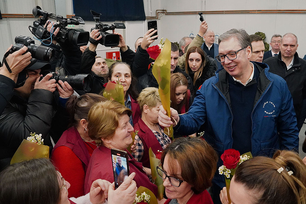 foto: vladimir šporčić / tanjugNIKUD BEZ KAMERE: A. Vučić u pogonu Jumka u Rudnoj Glavi