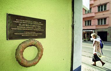 Slavko Ćuruvija, novinar i izdavač dva lista („Dnevni telegraf“ i „Evropljanin“), ubijen je u ulazu svoje kuće u Lole Ribara 35 na dan 11. aprila 1999, usred ratnog stanja. Zna se da su ga ubila dvojica počinilaca, oružjem kalibra 7,65 X 17 mm, najverovatnije „škorpionom“ (M-84). Nenarodni režim Slobodana Miloševića, njegovih fašističkih pomagača i kamarile domaćih izdajnika nije ni pokušao da to ubistvo rasvetli; naprotiv: njihov ministar informisanja Goran Matić izjavio je da „destabilizuju državu“ oni koji postavljaju pitanje „ko je ubio Ćuruviju?“ (14. maj 2000, Tanjug), čime je počinio krivično delo pomaganja učiniocu posle izvršenog krivičnog dela iz čl. 204 Krivičnog zakona Republike Srbije.
