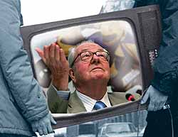 Prvo nam je u goste stigao Žan Mari le Pen. Skoknuo do Vršca da tamo otvori motociklističke trke, a posle je lepo primljen u Srpskoj radikalnoj stranci, tek da se ne zaboravi večita privrženost radikalima i Zemunu. Munze konza, vaistinu konza. Opet ću pokušati da analiziram ovdašnje medijsko ludilo. Kada sam mislio da sam sve video – čiču Le Pena kako mlati zastavicom na spidvej trkama, u zemlji gde nema crnaca i Arapa, odnekud se stvorio Karađorđe i održao besedu prvo na srpskom pa onda na francuskom. Kao, povešće sve nas ka pobedi?!! Kakve veze, za ime boga miloga, ima Karađorđe sa dvotočkašima i Le fakin Penom? Šta reklamira ovaj ludak – banku, štednju, motore, il’ se samo povremeno tako obuče pa drži govore? Pa gde su dvojnici Elvisa, Tome Zdravkovića, Brusa Lija ili Tite? Bili smo dakle kolektivni svedoci Trećeg srpskog motociklističkog ustanka.