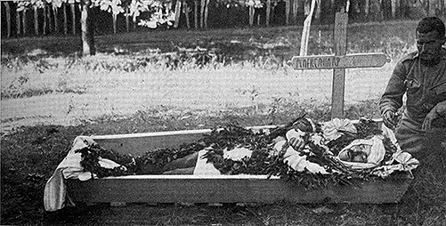 Pored mene prolazi veliki broj ranjenih vojnika. Toliko ih je da mi se čini da ceo puk maršira rasturen. Krvave glave, krvave ruke, noge, krvavi šinjel i čakšire. Čak i opanci puni krvi, idu tihi, nemi, bledi i ispijeni. Povodeći se posrću, padaju u razgaženo blato, pa se sa mukom dižu i nastavljaju svoj mučen put.