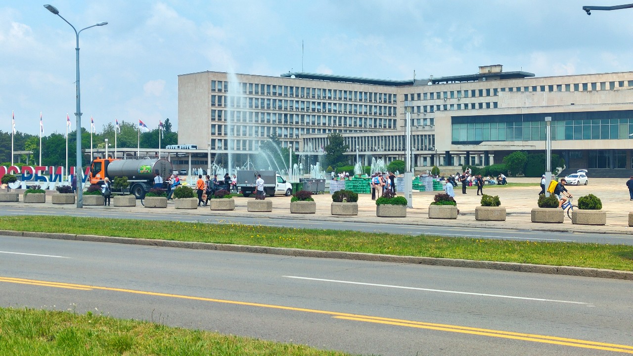 Podne je. Na platou ispred Palate Srbije već je parkirano nekoliko desetina autobusa iz raznih gradova Srbije. Ljudi se muvaju, traže hladovinu pod krošnjama drveća. Ili među zgradama preko puta.