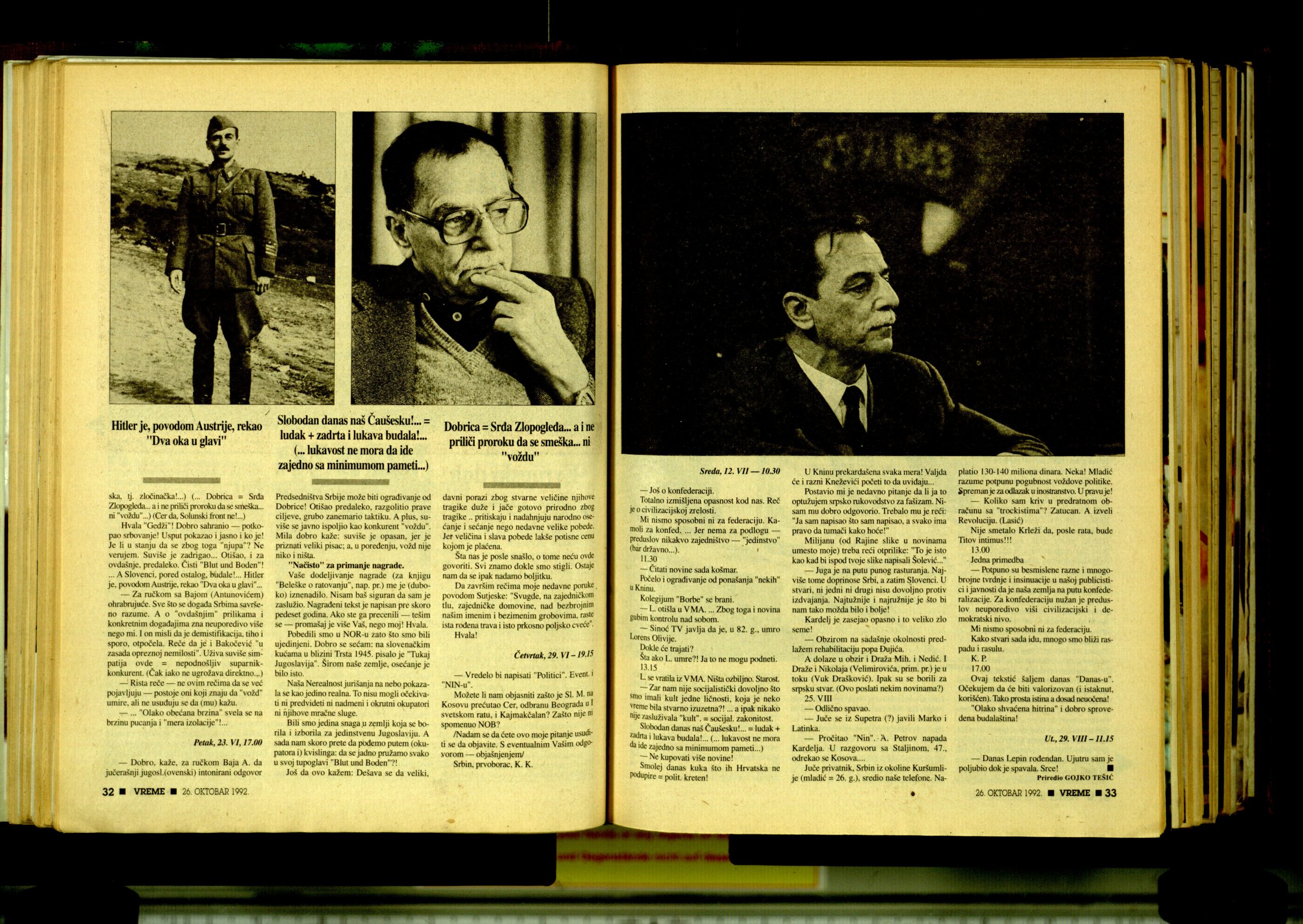 U FOTO GLARIJI možete videti skenirani tekst Koče Popovića: Dnevnik iz zaboravljene prošlosti (VREME BR. 105. 26. OKTOBAR 1992.).