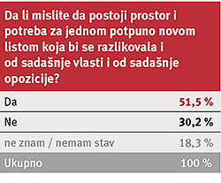 Okreni-obrni, i ovo istraživanje pokazuje da je, čak i sada, u uslovima maksimalne medijske i političke ofanzive i dominacije SNS režima, realan (i maksimalan) domet opozicionog, odnosno antirežimskog stava u srpskom javnom mnjenju negde između 35 i 40 odsto. To, pored ostalog, pokazuju odgovori na pitanja o aferama vlasti, standardu, kao i pravcu u kojem se zemlja kreće. Ali da bi se taj potencijal aktuelizovao, odnosno pretvorio u neke stvarne glasove za neke konkretne političke opcije i lidere, biće, po svemu sudeći, potrebna neka druga opozicija – ili barem znatno drugačije setovanje ove trenutno postojeće. Kao i neki drugi izbori.