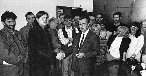 Žare je insistirao da upriličimo ceremoniju primopredaje u uredničkoj sobi, uz prisustvo dobrog dela redakcije. Bilo je to krajem aprila 1998, a moje je urednikovanje krenulo s prvim majskim brojem. Fotografije Goranke Matić prikazuju nas onako nestvarno mlade i nasmejane, zagledane u svetlu budućnost. Jedna svedokinja (I. M. H.) tvrdi da sam održao dosta strog nastupni govor, u miloševićevskom „a sada svako na svoj radni zadatak“ maniru, i biće da je tako ako ona tako kaže, ali ja se ne sećam ni jedne reči. Mislim da mi je bilo samo do toga da se to nekako što pre završi pa da ostanem sam u uredničkoj sobi, u koju me je preselilo s gornje palube.